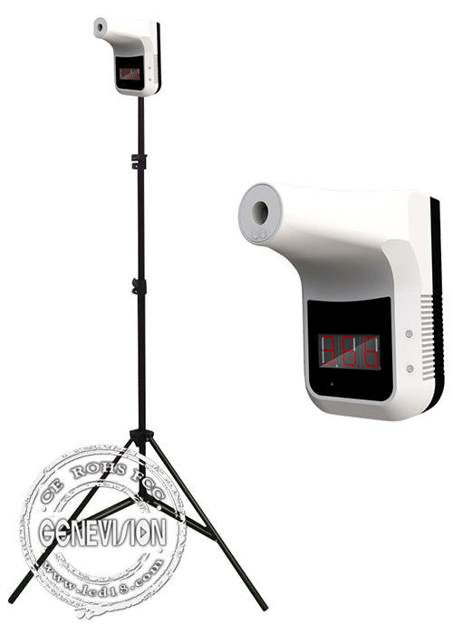 Wall mounted infrared thermometer made in india 1 year warranty chargeable battery ideal for use in offices to check staff temperature daily.